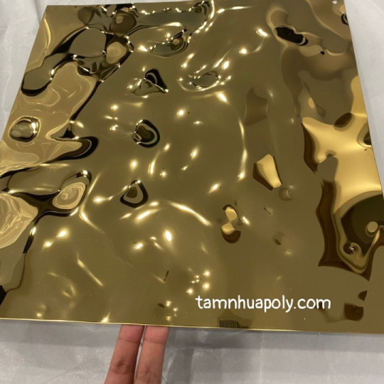 Ngày nay tấm inox sóng nước vàng 3D được tìm kiếm sử dụng rất nhiều trong các công trình ở quán ăn, nhà hàng, quán bar, quán karaoke....Nếu quý khách đang có nhu cầu mua tấm inox sóng nước 201 hay inox sóng nước 301 hay đến với Hoàng Trang chúng tôi. chuyên cung cấp Sỉ và Lẻ tấm inox sóng nước tại Dĩ An, Thuận An, Bình Dương, Thủ Đức, Quận 1, Quận 2, Quận 3. Quận 4, Quận 5, Quận 6, Quận 7, Quận 9, Quận 10 , Quận 12, Quận Gò Vấp, Long An, Đồng Nai, Bình Thạnh, Tân Bình, Hóc Môn, Nhà Bè, Tân Uyên, Bình Phước, Đắk Lắc, Tiền Giang, An Giang Khắp các tỉnh thành lân cận khu vực TP.HCM và hà Nội.... với giá hết sức cạnh tranh, không những vậy chúng tôi còn đa dạng về mẫu mà màu sắc và độ dày cho khách hàng lựa chọn.