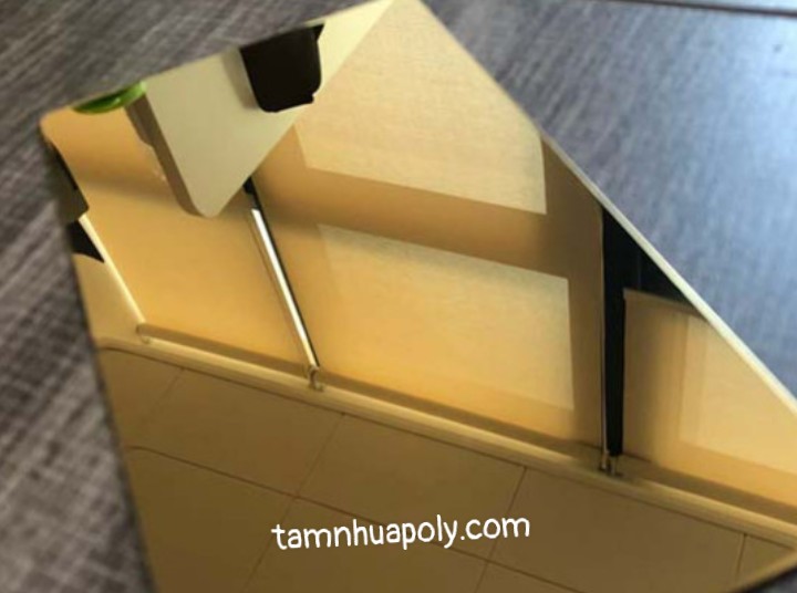 Tấm Alu gương vàng với màu săc sắc vàng đậm, bóng loáng tạo nên vẻ đẹp sang trọng, quý phái chính vì vậy chúng được xem là nguyên vật liệu được sử dụng phổ biến nhất. Trên thị trường hiện nay dòng sản phẩm Alu gương được sử dụng phổ biến là Alu Alcoresst và Triều Chen